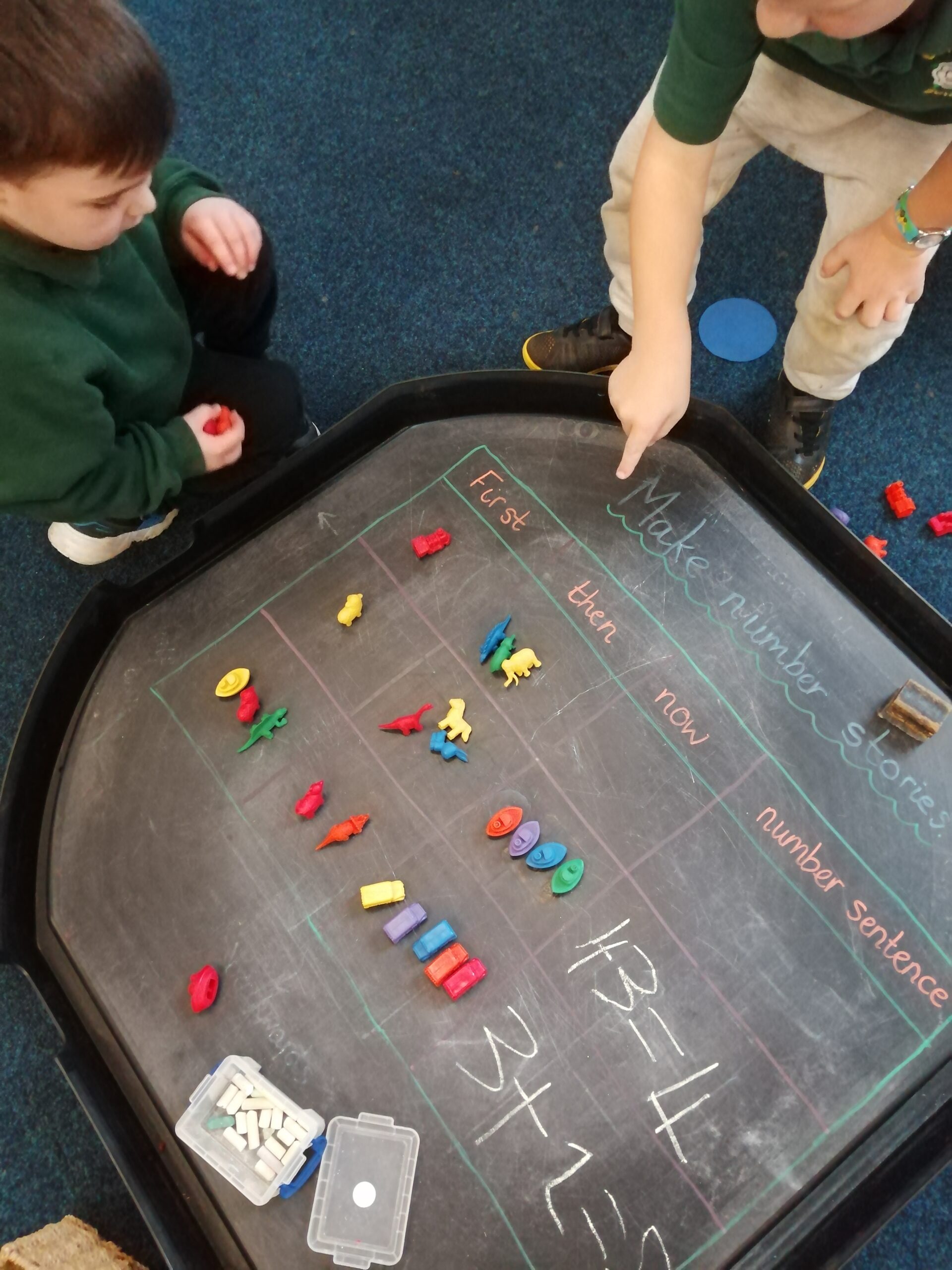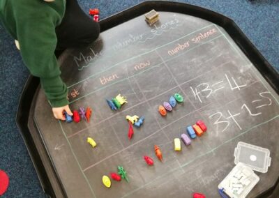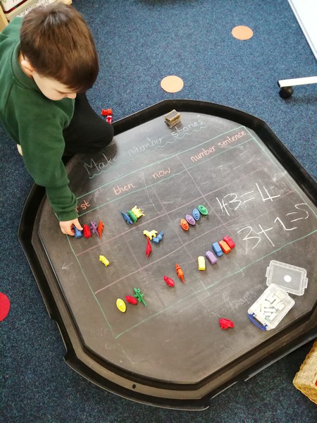 Children in Year 1 are learning to add by creating number stories and writing number sentences. We love learning through play!